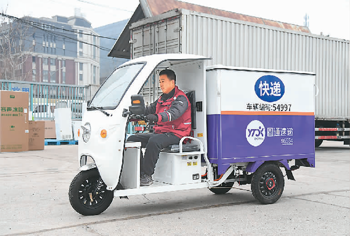 2月18日是龍年春節(jié)假期后第一個(gè)工作日,各快遞企業(yè)派送一線熱火朝天。圖為2月18日,圓通速遞員工在北京市海淀區(qū)北太平莊街道的一處快遞點(diǎn)出發(fā)送快遞。新華社記者 任超 攝