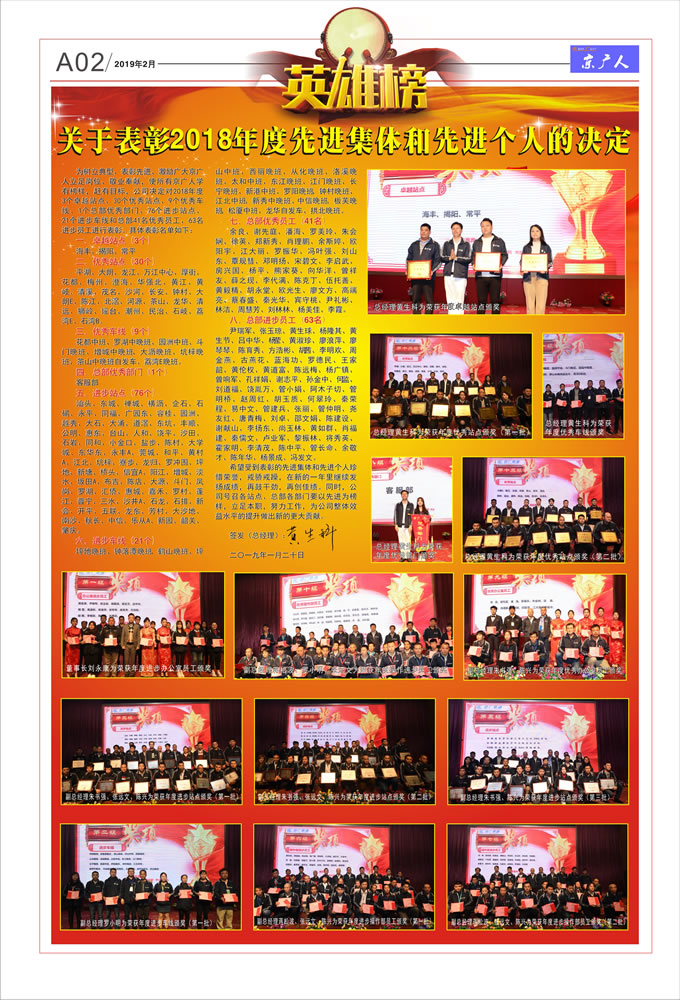 為樹立典型、表彰先進(jìn)、激勵(lì)廣大京廣人立足崗位、敬業(yè)奉獻(xiàn),使所有京廣人學(xué)有榜樣,趕有目標(biāo),公司決定對(duì)2018年度3個(gè)卓越站點(diǎn)、30個(gè)優(yōu)秀站點(diǎn)、9個(gè)優(yōu)秀車線、1個(gè)總部?jī)?yōu)秀部門、76個(gè)進(jìn)步站點(diǎn)、21個(gè)進(jìn)步車線和總部41名優(yōu)秀員工、63名進(jìn)步員工進(jìn)行表彰。具體表彰名單如下: