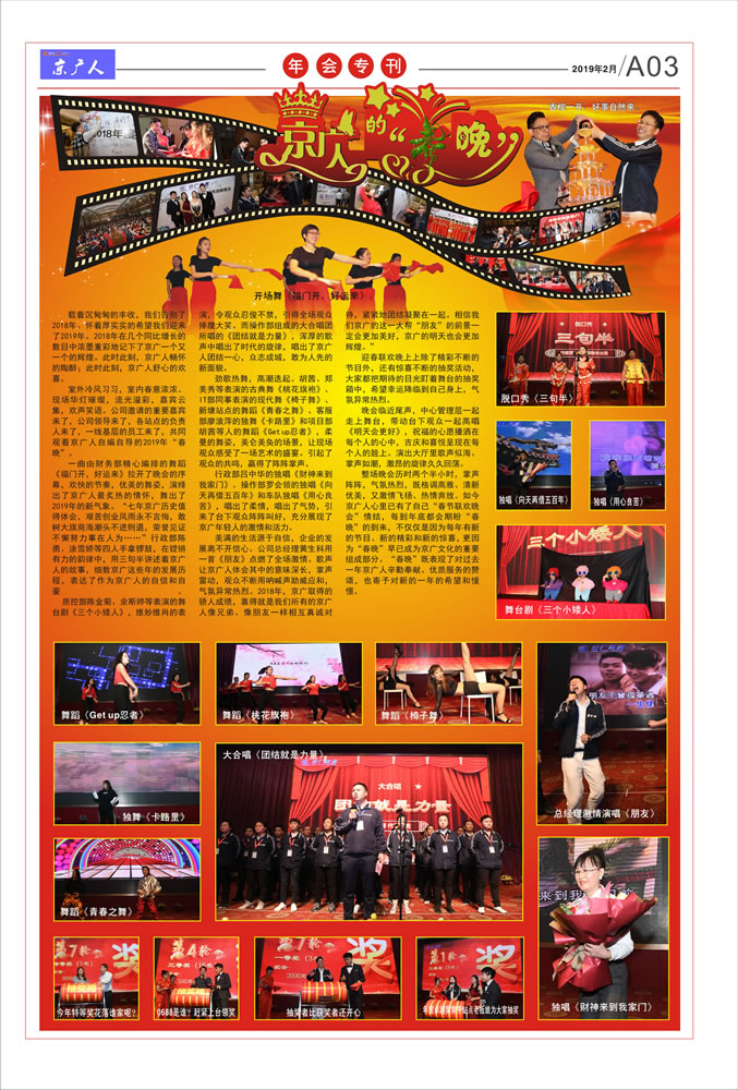 載著沉甸甸的豐收,我們告別了2018年。懷著厚實(shí)實(shí)的希望我們迎來了2019年。2018年在幾個(gè)同比增長(zhǎng)的數(shù)目中濃墨重彩地記下了京廣一個(gè)又一個(gè)的輝煌。此時(shí)此刻,京廣人暢懷的陶醉;此時(shí)此刻,京廣人舒心的歡喜。 室外冷風(fēng)習(xí)習(xí),室內(nèi)春意濃濃?,F(xiàn)場(chǎng)華燈璀璨,流光溢彩,嘉賓云集,歡聲笑語。公司邀請(qǐng)的重要嘉賓來了,公司領(lǐng)導(dǎo)來了,各站點(diǎn)的負(fù)責(zé)人來了,一線基層的員工來了,共同觀看京廣人自編自導(dǎo)的2019年“春晚”