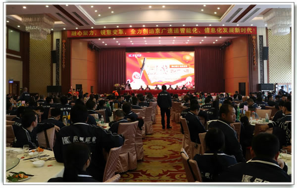 狗問(wèn)平安隨臘去,豬生財(cái)富報(bào)春來(lái)。1月20日,京廣速遞2018年度總結(jié)表彰大會(huì)暨2019年度工作會(huì)議在東莞虎門(mén)東興大酒樓隆重舉行。公司董事長(zhǎng)劉永康、董事總經(jīng)理黃生科、副總經(jīng)理羅小明、朱書(shū)強(qiáng)、張遠(yuǎn)文、陳興、蔣松波及各站點(diǎn)負(fù)責(zé)人、總部全體員工共800多人出席了此次年會(huì)。
